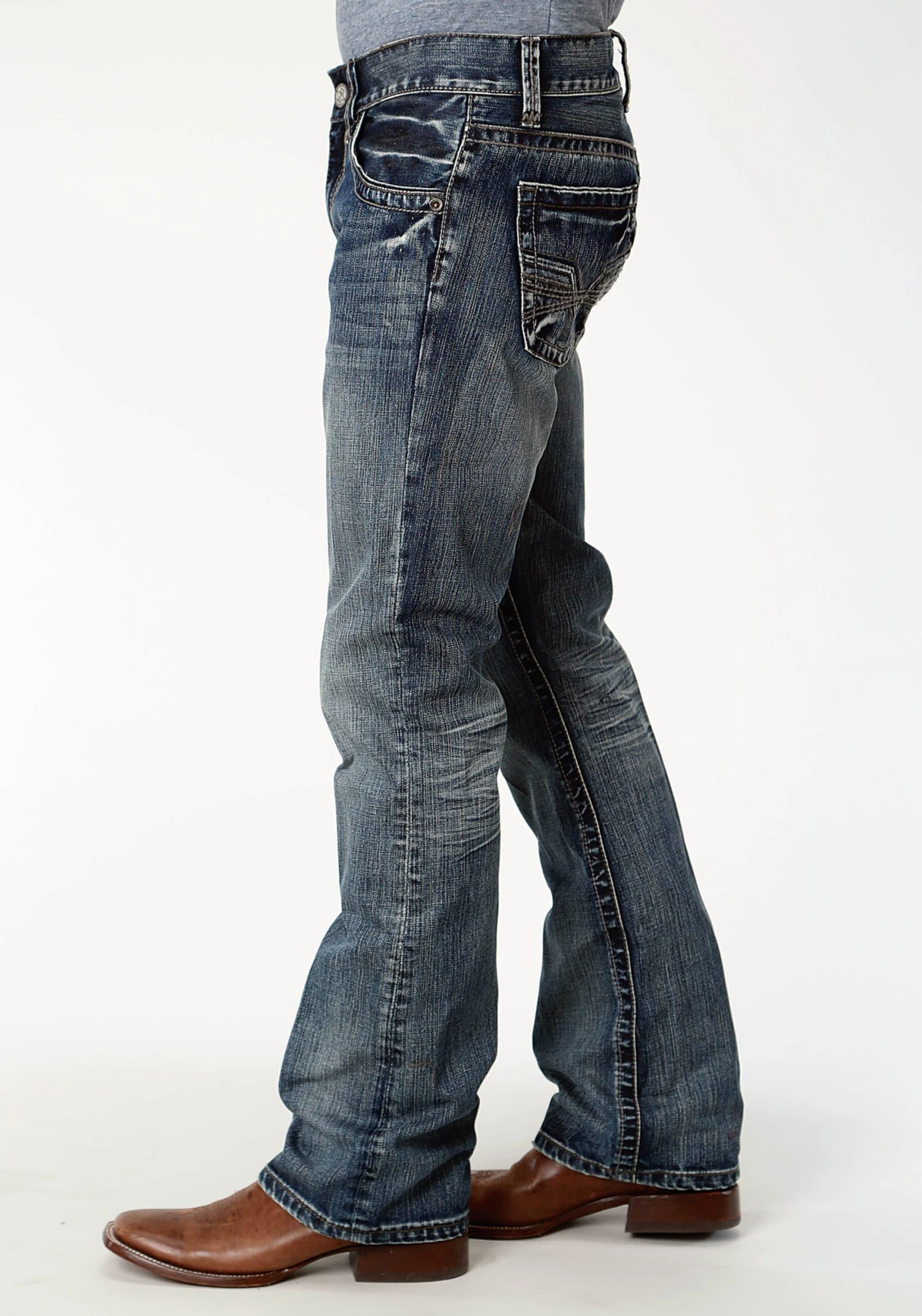 Jagger Fit Tin Haul Men’s Jean * Sits Lower On The Waist * Easy Through Hip & Thigh W/Bootcut Leg Opening * Geo Design Embroidery With Corded V Structure On Back Pockets * Tin Haul Branded Btns, Rvts, & Zippers