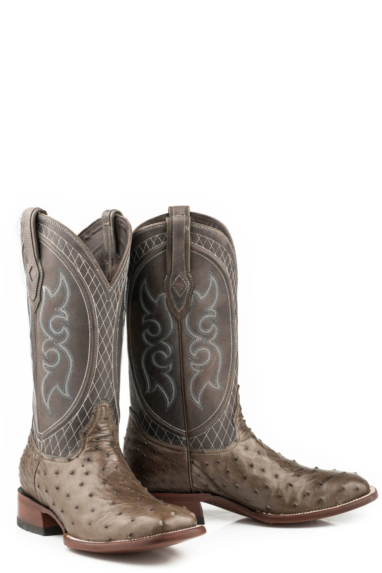 Grey Full Ostrich Vamp * 13″ Shaft * Intricate Hand Stitching & Cording * Channel Welted Full Leather Construction * 56 Lemonwood Pegs & 8 Premium Brass Nails Per Boot * Leather Lined Poron Insole * Beveled Bottom Sole *