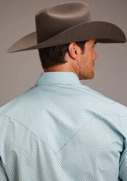 Stetson Blue Tooling Paisley Long Sleeve Shirt