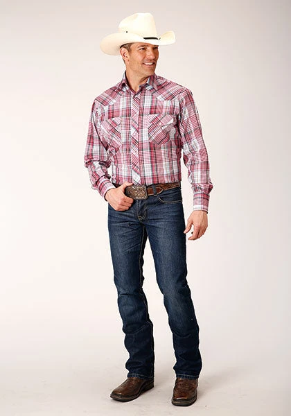 Men’s Long Sleeve Western Style Shirt * Standard 1 Pt. Front & Back Yokes * Patch Pockets & Flaps * Cotton/Poly Plaid YD Fabric * 3 Snap Shaped Barrel Cuff