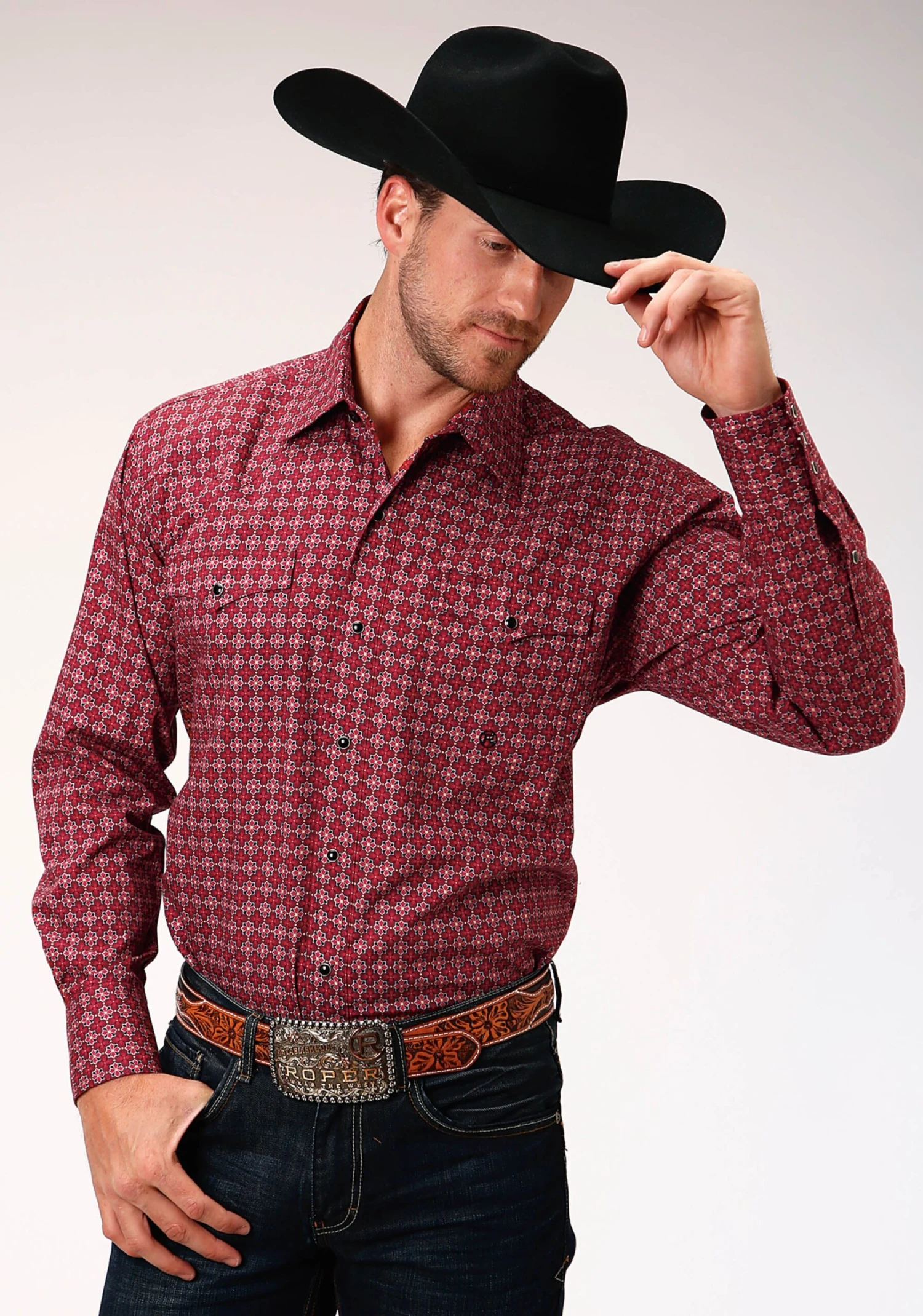 Men’s Long Sleeve Shirt * Snap Front * 1 Pt Curved Front Yoke Into Neck * 1 Pt Curved Back Yoke * 2 One Pt Pockets W/Curved Flaps * 3 Snap Cuff * Roper “R” Embroidery