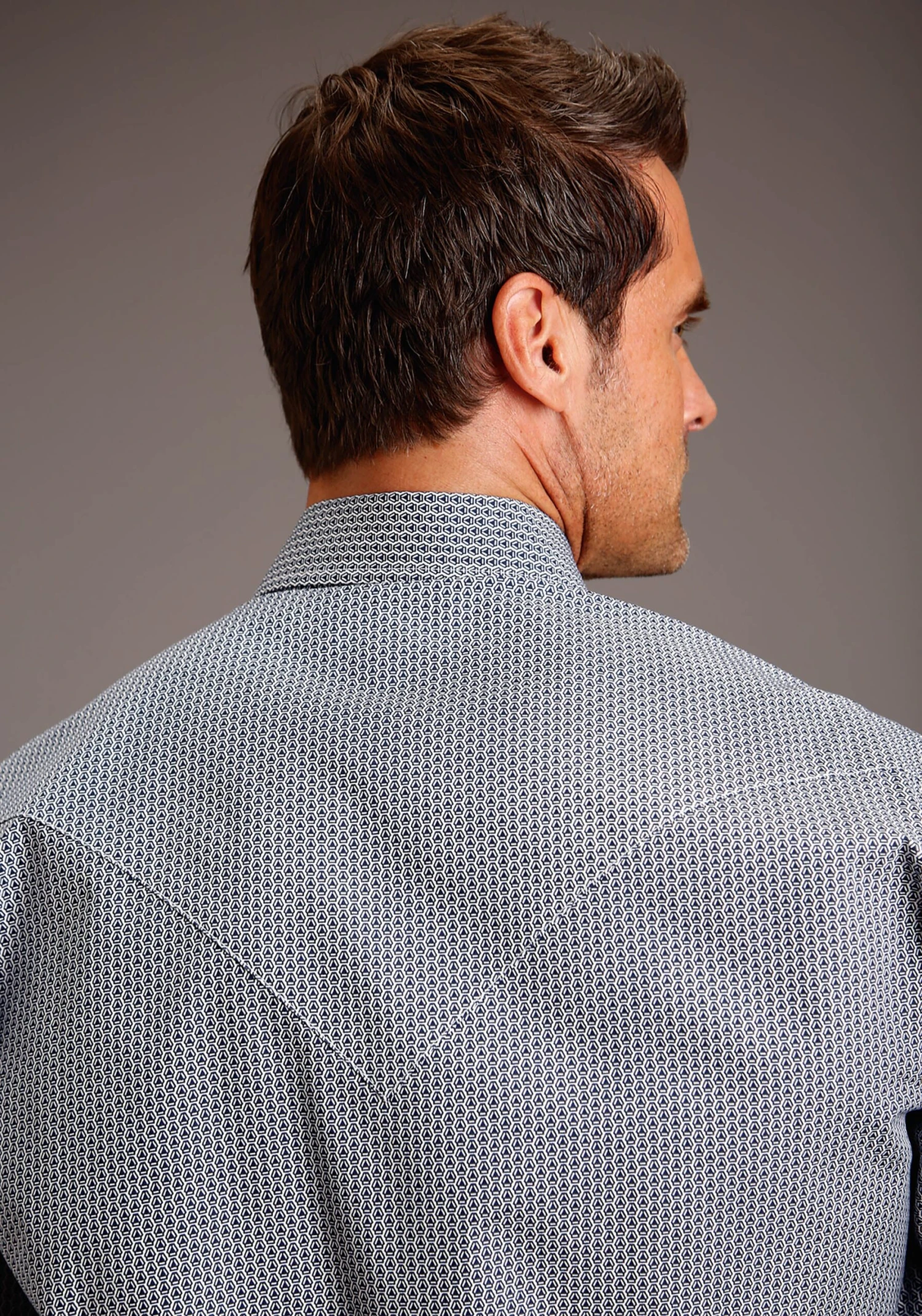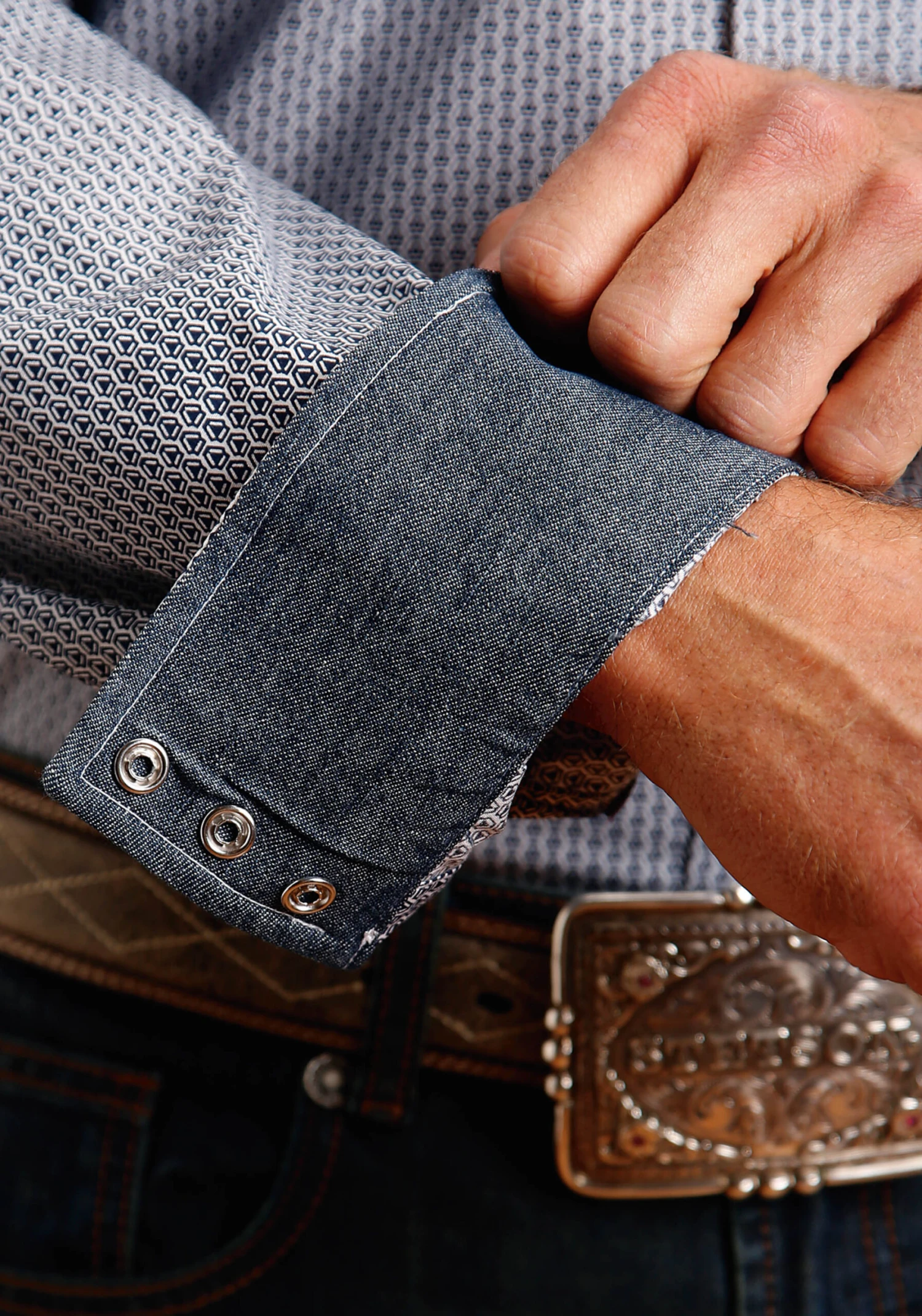 Allover Geo Print On Cotton Poplin * 1 Pt Ultra Deep Curved Back Yoke * Stetson “S” Emb * “Stetson” Emb On Rt Slv Placket * Denim Inside Trim * 3 Snap Cuff * Classic Snap Front Featuring Logo Pearl Snaps