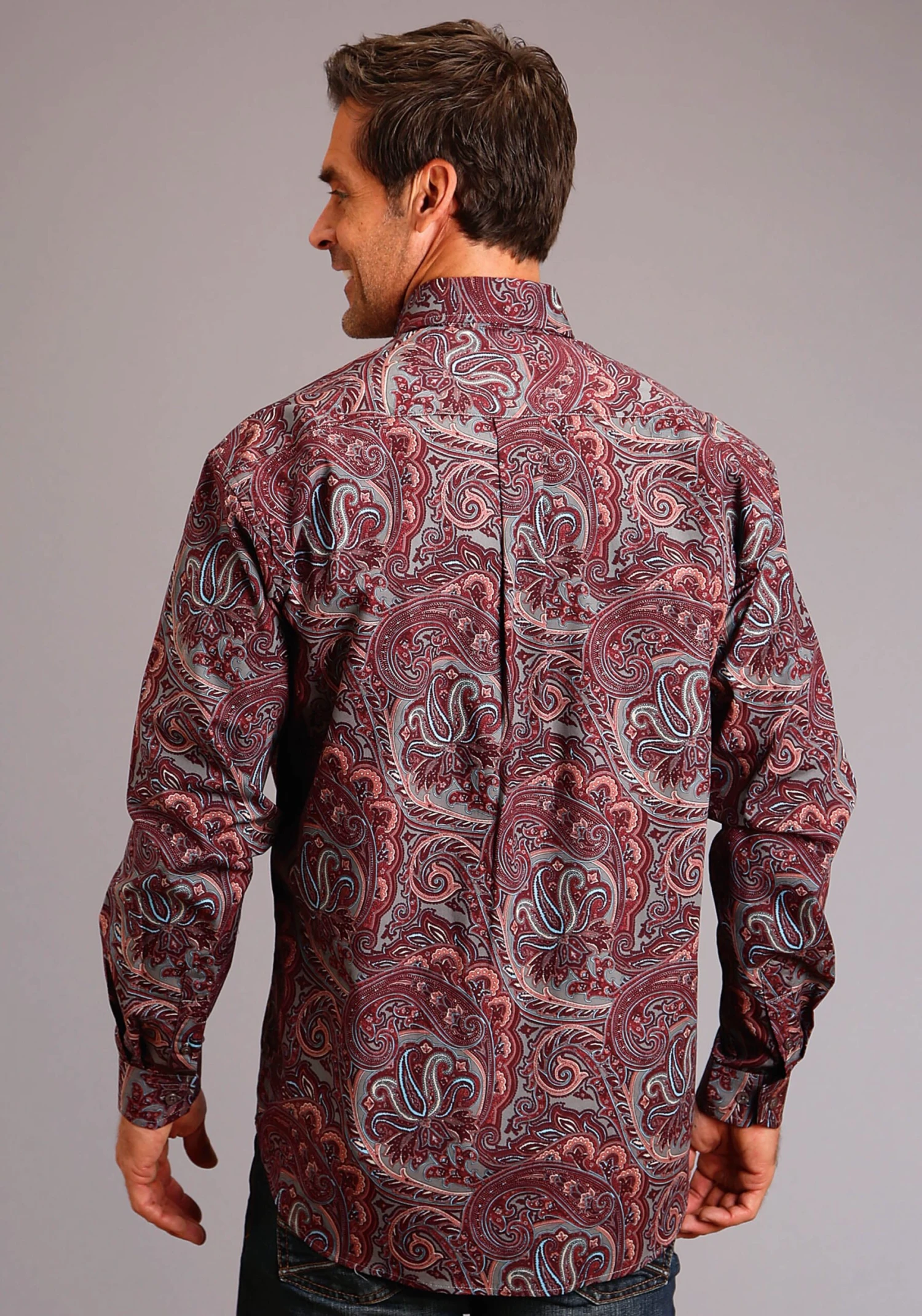 Paisley Print On Cotton Poplin * Straight Back Yoke W/Pleat * Contrast Inside Trim * Stetson “S” Emb * “Stetson” Emb On Rt Slv Placket * 2 Btn Adj Mitered Edge Cuff * Classic Btn Front Featuring Logo Stacked Pearl Btns