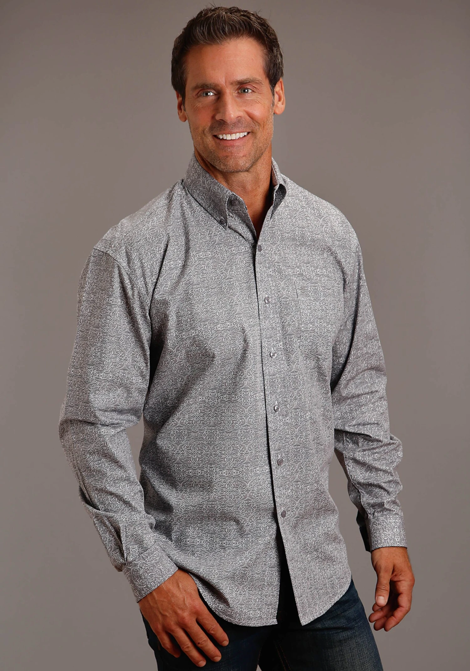 SKU: D2F5B 7926966518007 Category: Tops Tags: 1 Pocket, 100% COTTON, 1570 SHADOW MEDALLION, APPAREL, Button, Color: BLUE, Color: GREY, GROUP 1, GROUP 2, Long Sleeve, MENS, Print, PRINTED, STETSON, STETSON BUTTON 1 OPEN POCKET PRINT, Stetson Men's Collection- Summer I, Stetson Men's Collection- Summer II, Tops